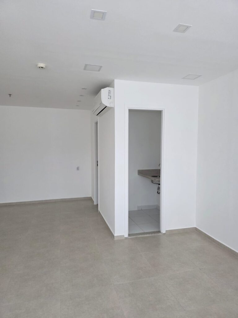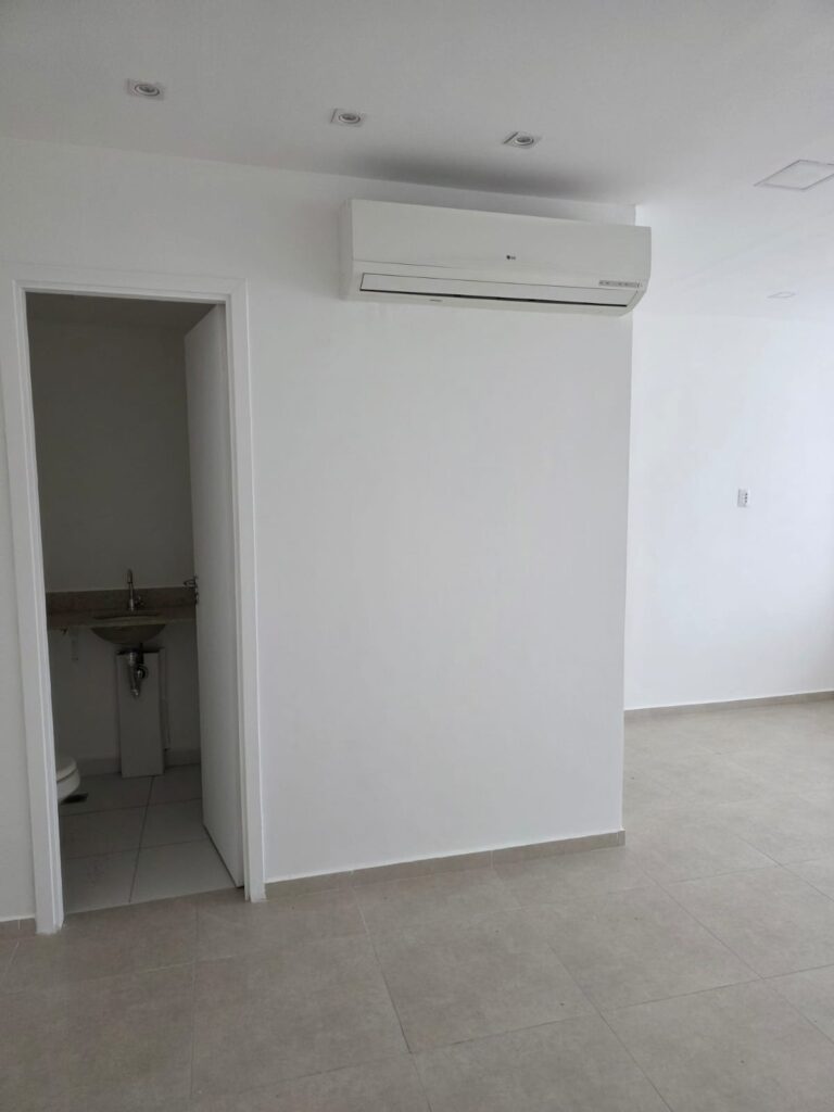 A sala possui 38 m² e foi planejada para oferecer máxima funcionalidade. Atualmente, o espaço encontra-se totalmente reformado, apresentando um visual moderno e profissional. Além disso, o ambiente já conta com sistema de ar condicionado instalado, o que representa uma economia imediata para o comprador. Portanto, a planta que inclui banheiro privativo e copa está pronta para receber seu escritório, consultório ou empresa sem a necessidade de novos gastos.